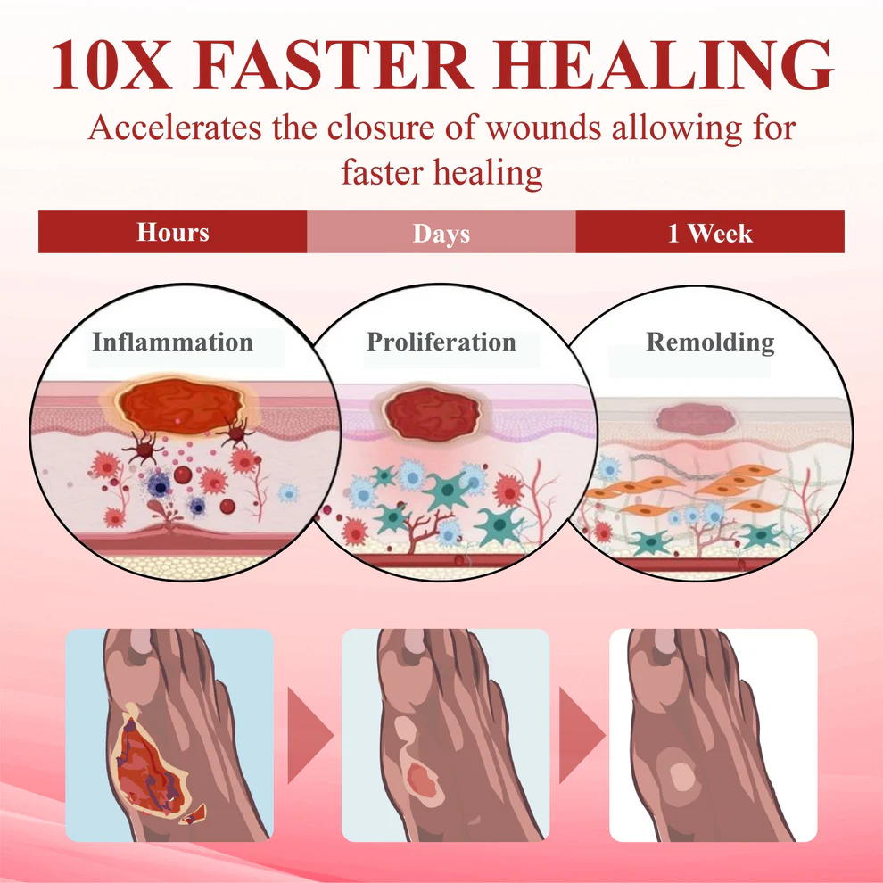 Whether you’re dealing with cracked heels, skin irritation, or minor wounds, this formula helps speed up tissue regeneration, reduce healing time, and lower your risk of complications—all while keeping your skin protected from harmful bacteria.