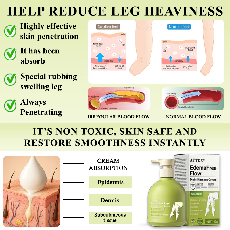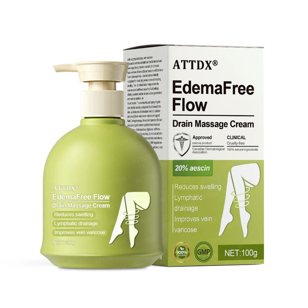 ATTDX® EdemaFree Flow Drain Massage Cream reduces swelling, eases heavy legs, boosts circulation, and restores lasting comfort with natural botanicals.