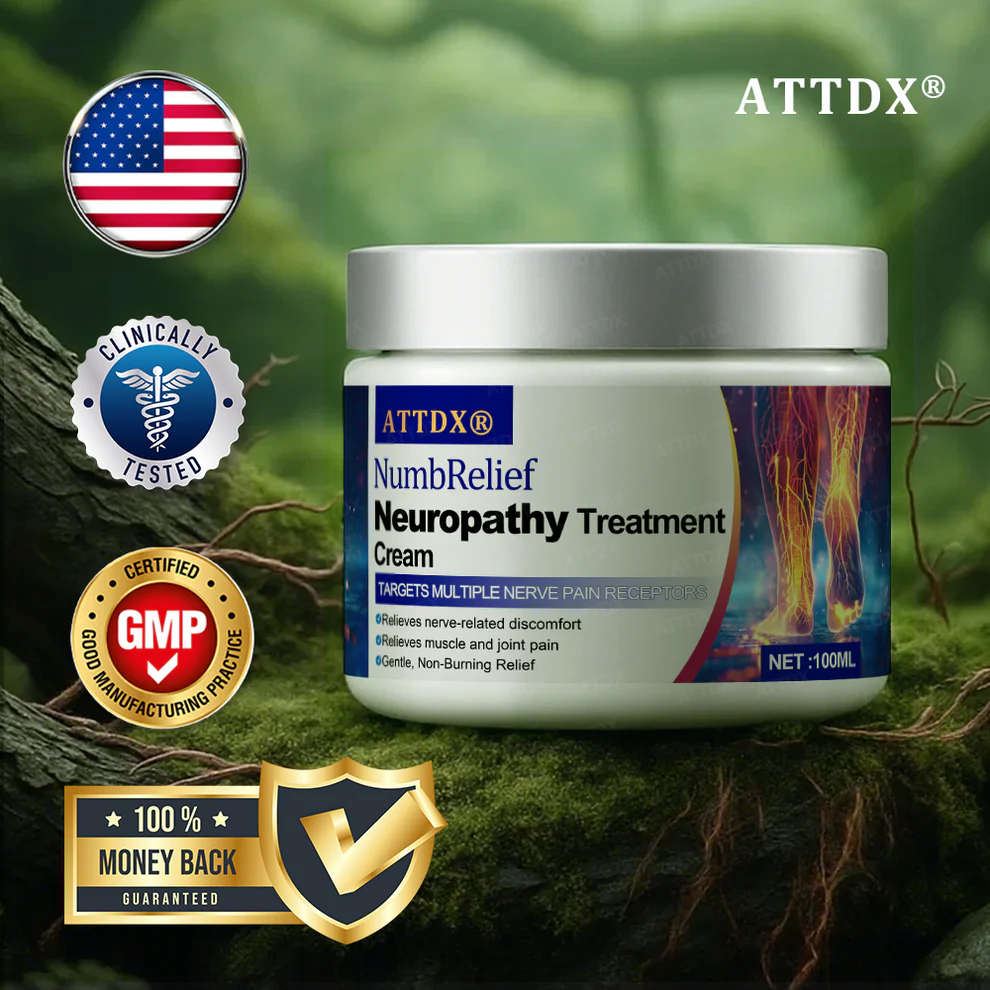 ATTDX® NumbRelief Neuropathy Treatment Cream delivers a fast-acting cooling effect upon application, helping reduce burning, tingling, and surface discomfort.As it penetrates deeper, the formula calms overactive nerves, decreases numbness, and interrupts pain signals directly at the source.It also promotes microcirculation and supports nerve regeneration, helping restore proper nerve function and improve long-term sensation.