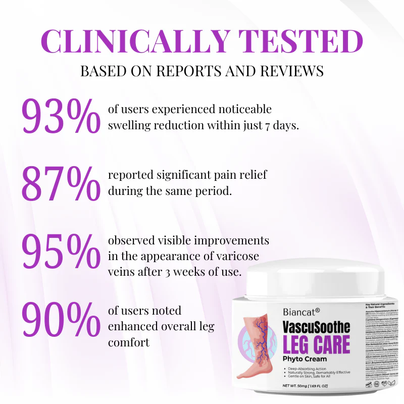 Biancat® VascuSoothe Leg Care Phyto Cream relieves varicose vein pain, swelling, and heaviness fast using plant-based, dermatologist-endorsed ingredients—visible results in days.