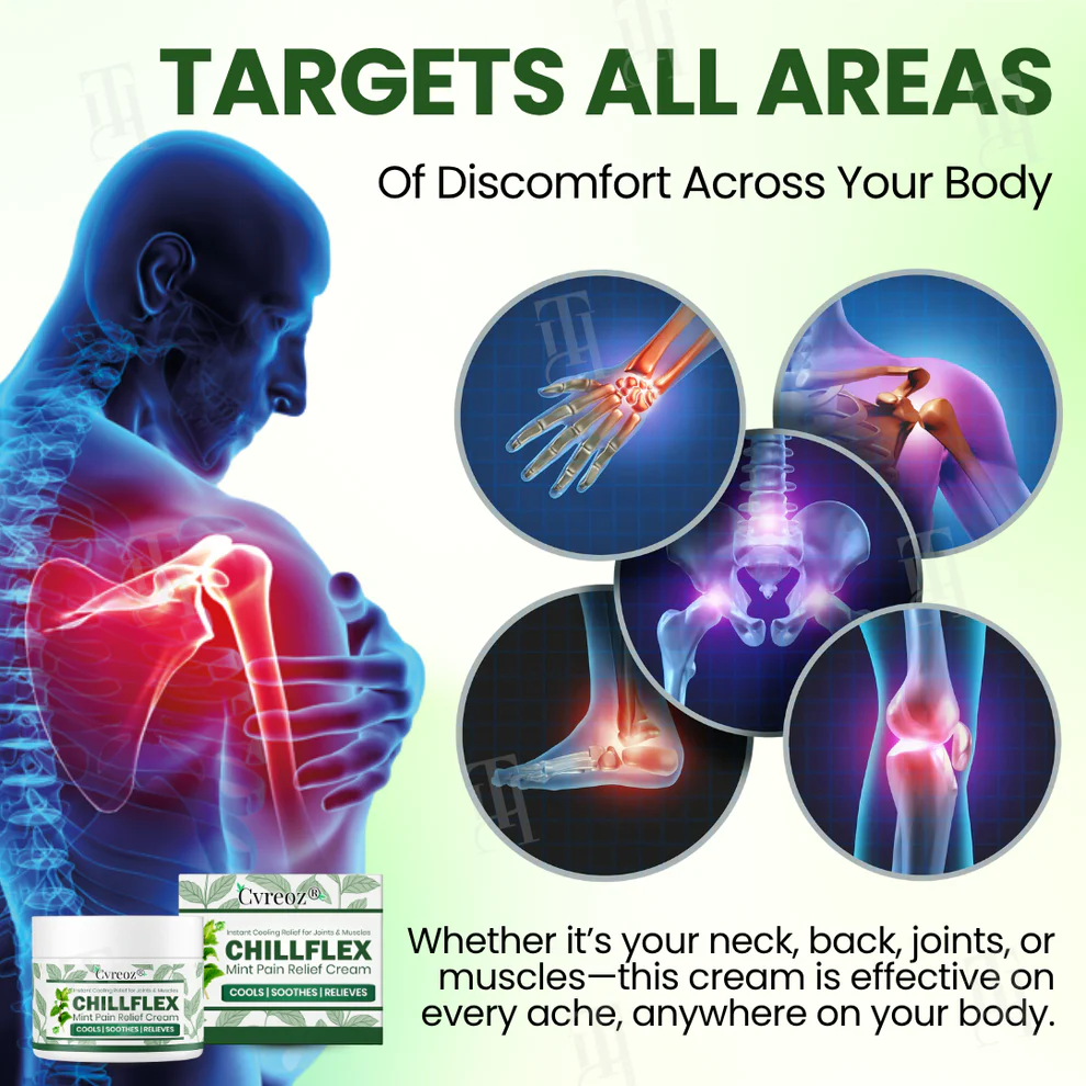 Cvreoz® Chillflex Mint Cream delivers fast, cooling relief for joint, muscle, and nerve pain—no mess, no chemicals, just deep, lasting comfort