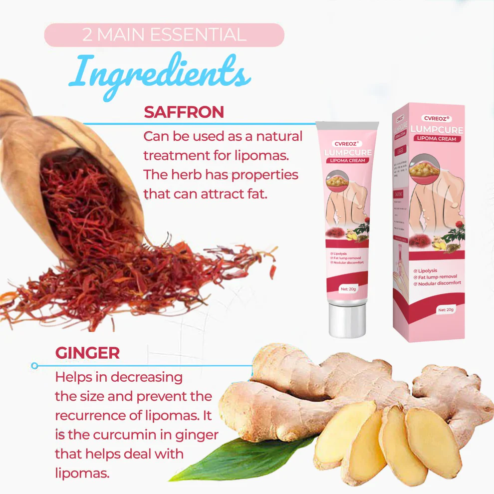 🩷 Formulated with a special blend of saffron & ginger that targets the root cause of lipomas.