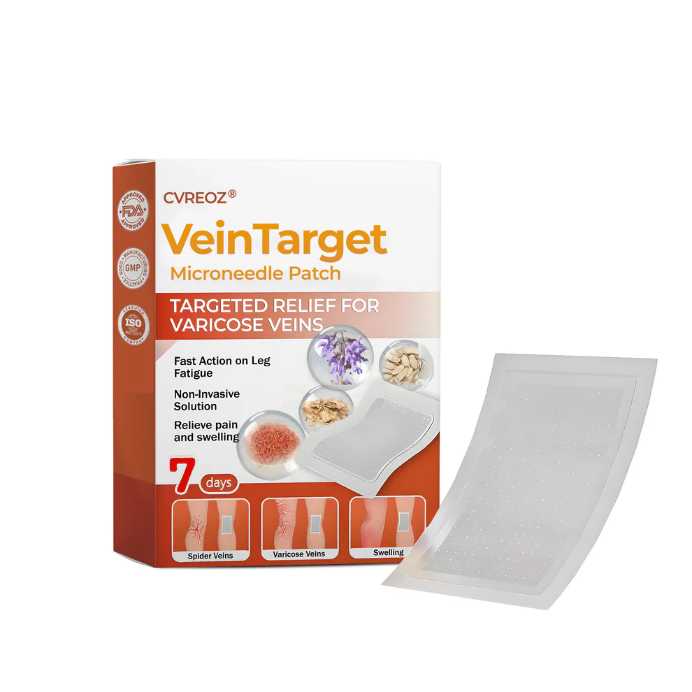Cvreoz® VeinTarget is the first FDA-registered, GMP-certified Alpine herbal microneedle patch with a 96% success rate in treating chronic venous insufficiency at home. Its breakthrough transdermal delivery system penetrates 100x deeper than topical creams and delivers visible vein reduction in just 7–14 days. Skip the costly surgical procedures and restore healthy circulation naturally – all from the comfort of your home.