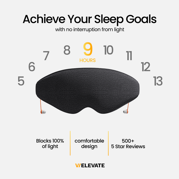 Welevate’s sleep mask is designed to block 100% of light and reduce ambient noise, creating the ideal environment for deeper, uninterrupted rest and backed by sleep science.