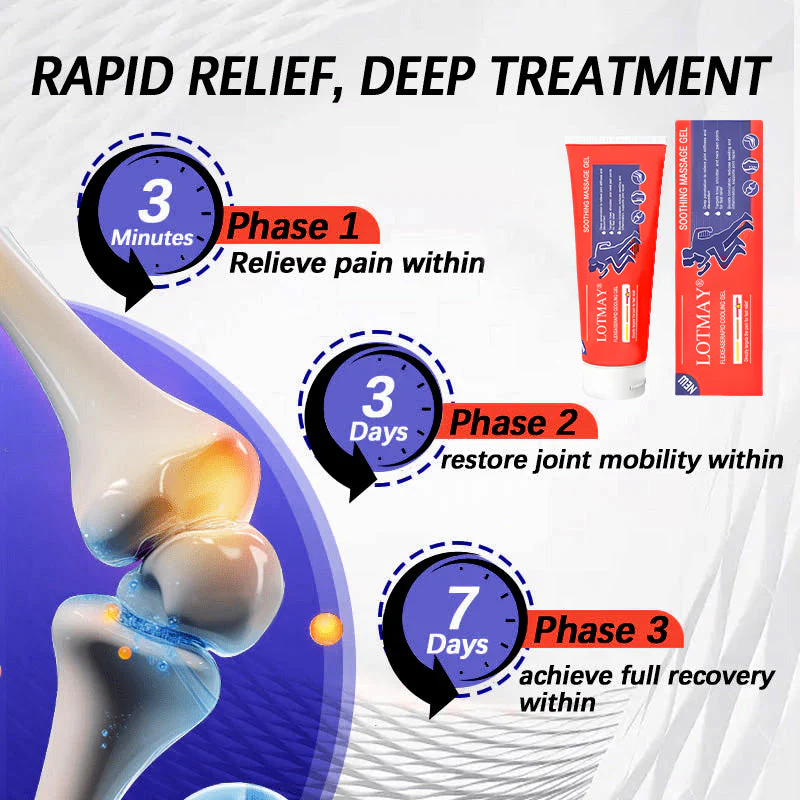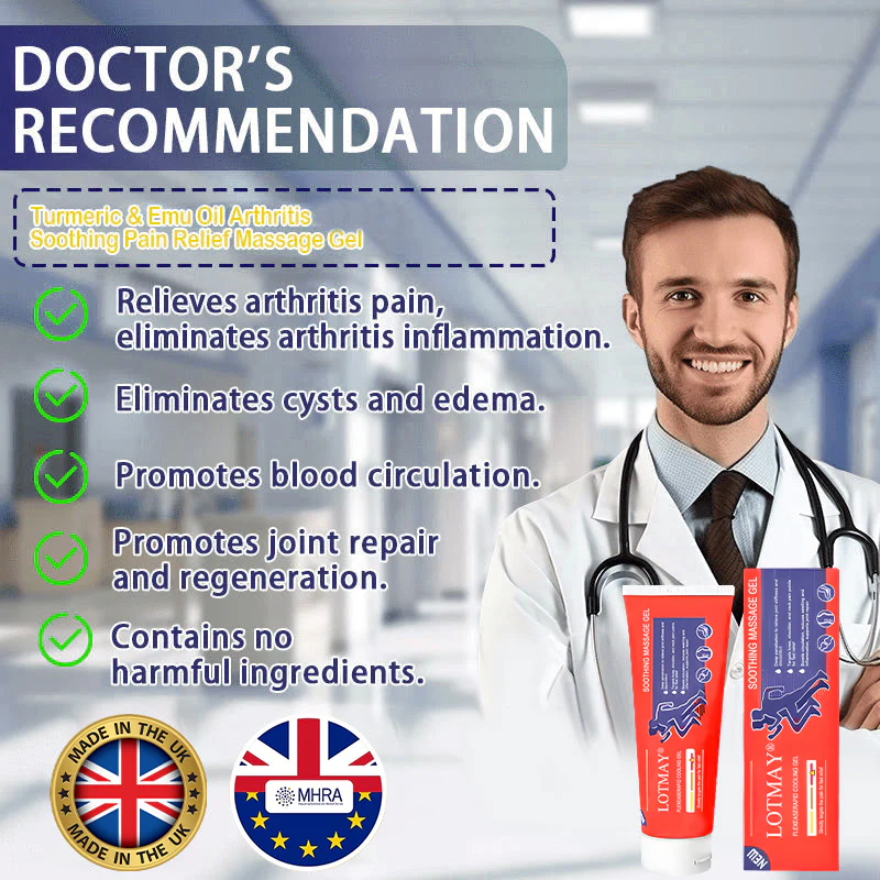 Approved by orthopedic specialists, LOTMAY® Turmeric & Emu Oil Arthritis Soothing Pain Relief Massage Gel delivers fast relief, soothing pain in just 3 minutes. It restores joint mobility within 3 days and supports full arthritis recovery in just 7 days. Formulated with natural anti-inflammatory ingredients like organic turmeric and pure emu oil, this gel penetrates deeply to reduce inflammation, lubricate joints, and promote long-term healing. Clinically proven and easy to use, it’s the ultimate solution for arthritis sufferers seeking quick relief and lasting recovery.