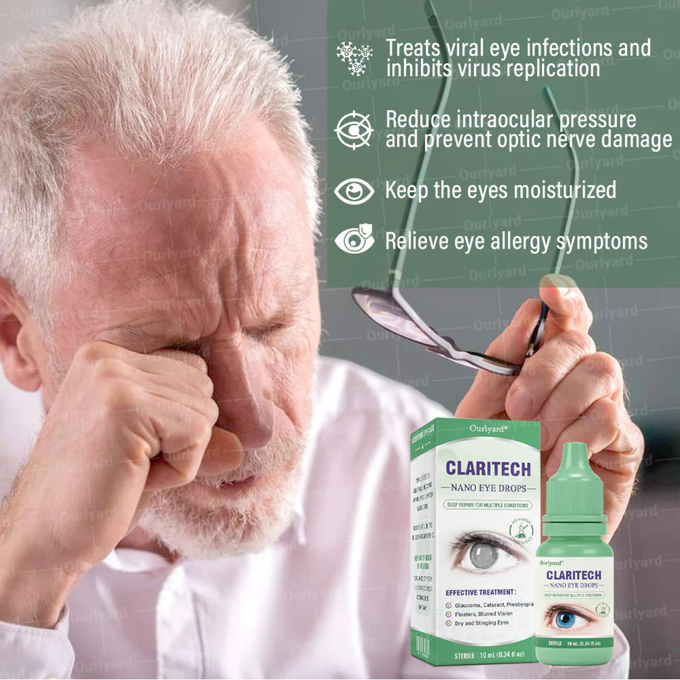 Nano eye drops with cyclodextrin technology improve vision, relieve dryness, reduce eye pressure, and support cataract, glaucoma, and presbyopia care