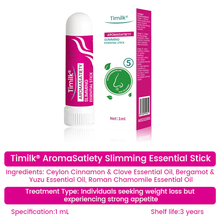 Timilk® AromaSatiety Essential Stick for Appetite Control is built on the science of aromatic satiety, using a unique blend of natural essential oils to influence the brain through olfactory signals. By gently stimulating the appetite control center, it helps suppress unnecessary cravings, enhance natural feelings of fullness, and calm emotional hunger. Unlike traditional methods that force the body through harsh diets or drugs, this innovative approach works in harmony with your brain and senses, making it easier to eat less naturally and achieve effortless, sustainable weight loss.