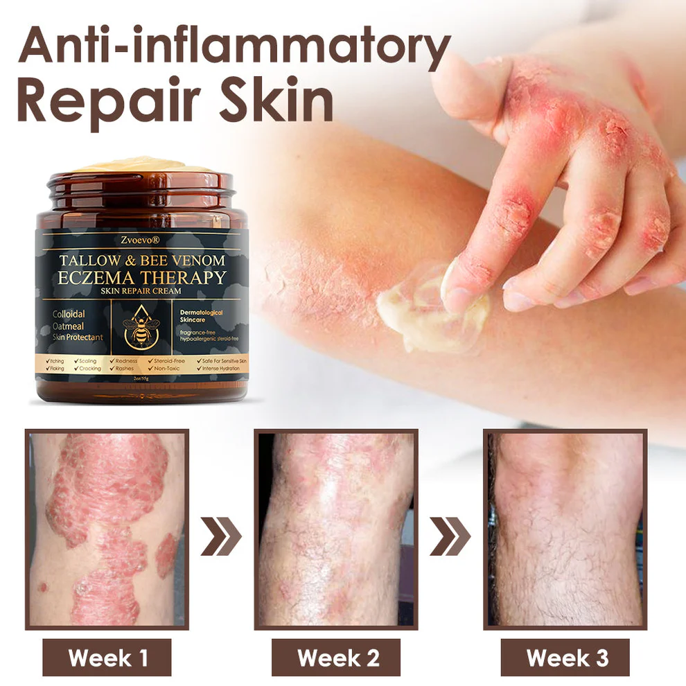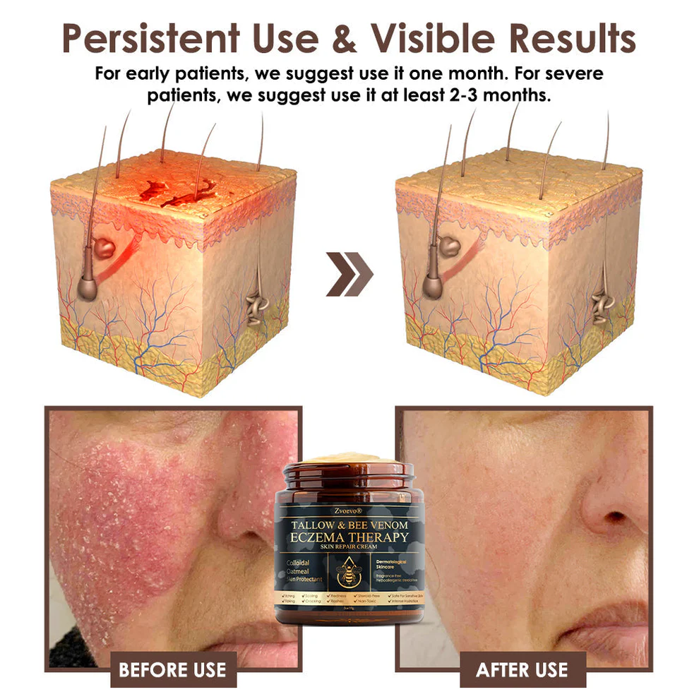 Clinically tested by dermatologists, Zvoevo® Tallow Bee Venom Skin Restoration Cream can show significant improvements in eczema and dermatitis within 7 days.